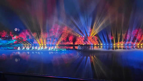 吟古今盛景,展艺术精粹。4月8日晚7时30分,大型水上实景剧《曹州吟》在曹州牡丹园国花魂广场旁的湖面首次上演。 本剧的舞美部分由我公司承接,该剧是以祖源文化和“一都四乡”文化为主线创作的大型旅游实景作品,整场演出分为雷泽之光、非遗瑰宝、水墨丹青、华夏武魂、琴台高会、国色天香六个篇章,运用大型激光玄幻特效、雾森等艺术表现手法,融汇舞蹈、戏曲、武术、杂技等元素,充分展示我市的历史文化和民俗风情。现场场面宏大、气氛热烈,呈现出一场现代科技与舞台艺术相结合的文化盛宴。 | |