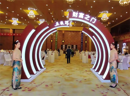 8月3号上午,五粮醇“开启美好 共叙未来”茶话会在艺达酒店圆满举行,现场氛围,DP展示,财富门通道等美陈木制作布置,均由我司设计制作,得到客户以及来宾一致好评。