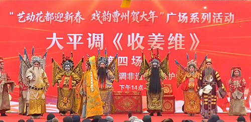 牡丹区文化底蕴深厚。大平调、豫剧等戏曲艺术早已融入曹州儿女精神血脉。近年来,牡丹区深耕文化惠民,多元活动惠及全民,完成4场省级“村晚”示范点演出。“文化五进”“四季村晚”等活动全年超2000场,让群众在家门口尽享文化盛宴。