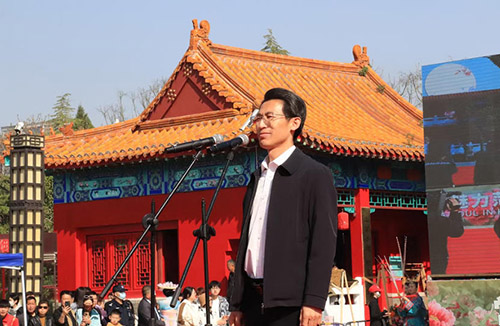 4月4日,2026年曹州牡丹园赏花开园仪式在曹州牡丹园隆重启幕。市委宣传部副部长、市新闻办主任、市委讲师团团长陈新振,市文化和旅游局党组书记、局长杨东波,市国资委党委委员、副主任李晖,市文旅集团党委副书记、总经理田涛,市文旅集团副总经理宫衍军,市文旅集团党委委员、副总经理、曹州牡丹园景区管理服务有限公司董事长孔博以及其他相关单位负责同志和各界嘉宾代表参加仪式。