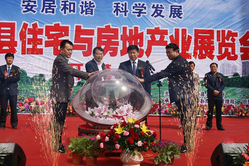 开幕式由县委副书记、助长刘文林主持,县委书记成伟宣布巨野县住宅与房地产业展览会开幕,各位领导共同触摸启动球,冷焰火、彩烟、皇家礼炮、礼花炮燃放,彩虹机开启,锣鼓队、盘鼓队、舞狮队共同表演,开幕仪式圆满结束。