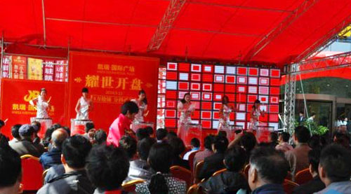 5月11日,雨过天晴,气候宜人,由我公司承办的菏泽凯瑞国际广场开盘仪式在这美好的日子里盛大举行。 活动现场人头攒动,彩旗飘扬,气球随风舞动。众多商户在今天的仪式上订购了自己心仪的商铺。赏心悦目的各种文艺表演、热闹纷繁的"飞镖索礼品"活动,为凯瑞国际广场的开盘仪式增添了不少光彩,吸引了市民驻足观看。